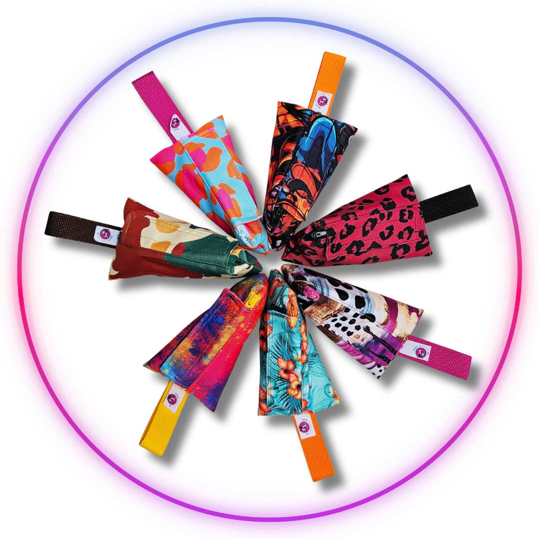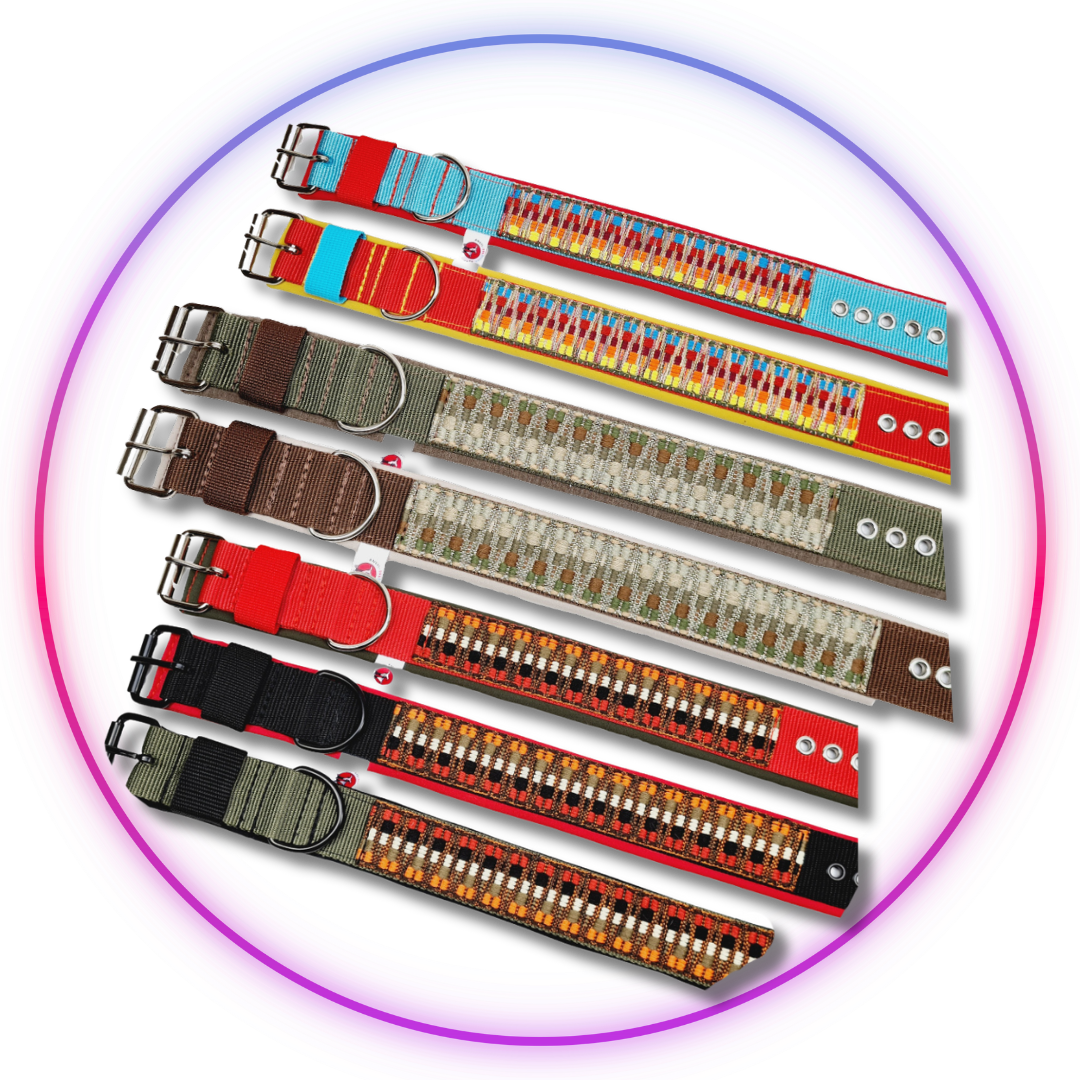 Seit 2018 nähe ich in NRW handgemachte Unikate – farbenfroh, robust, praktisch und garantiert frei von langweiligem Standardkram. Halsbänder, Leinen, Gassi-Bags, City-Bags, Futterapportierbeutel, Dummys, Kacki-to-Go, Hundedecken, Ersatzbezüge für runde Hundebetten … alles entsteht bei mir an der Nähmaschine, Stück für Stück, komplett von Hand.